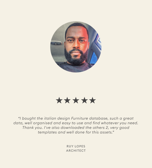 The Italian Furniture Database organises suppliers, prices, materials, and images in one place. It keeps your sourcing clean and structured, helping clients understand and approve selections with ease.